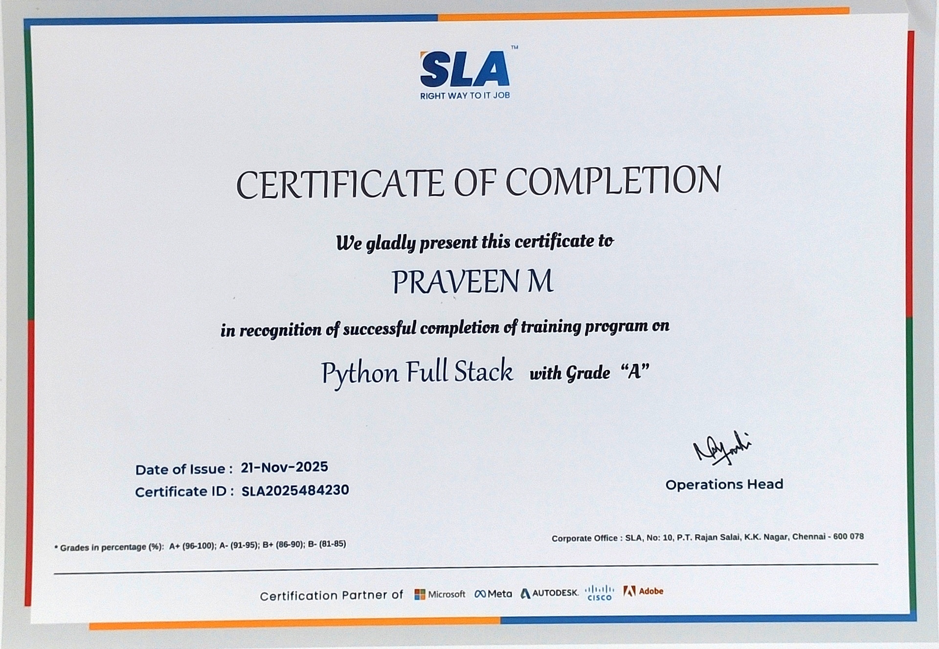 Python Full Stack Web Development (6 Months – Offline)