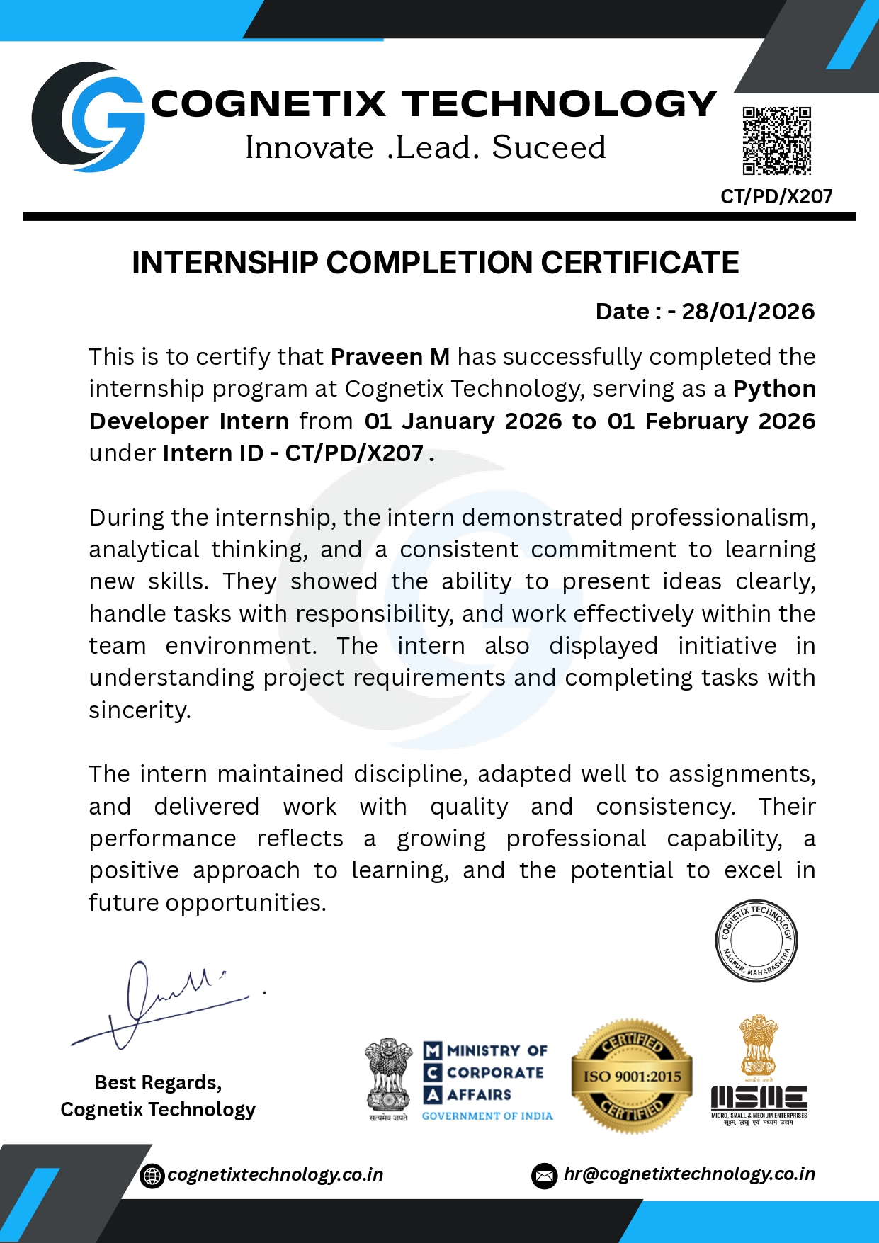 Worked on Python-based backend development and real-time project tasks.